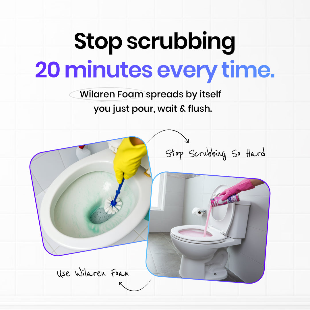 Experience fast, effortless bathroom cleaning with the Wilaren Foam Cleaner Combo Pack.